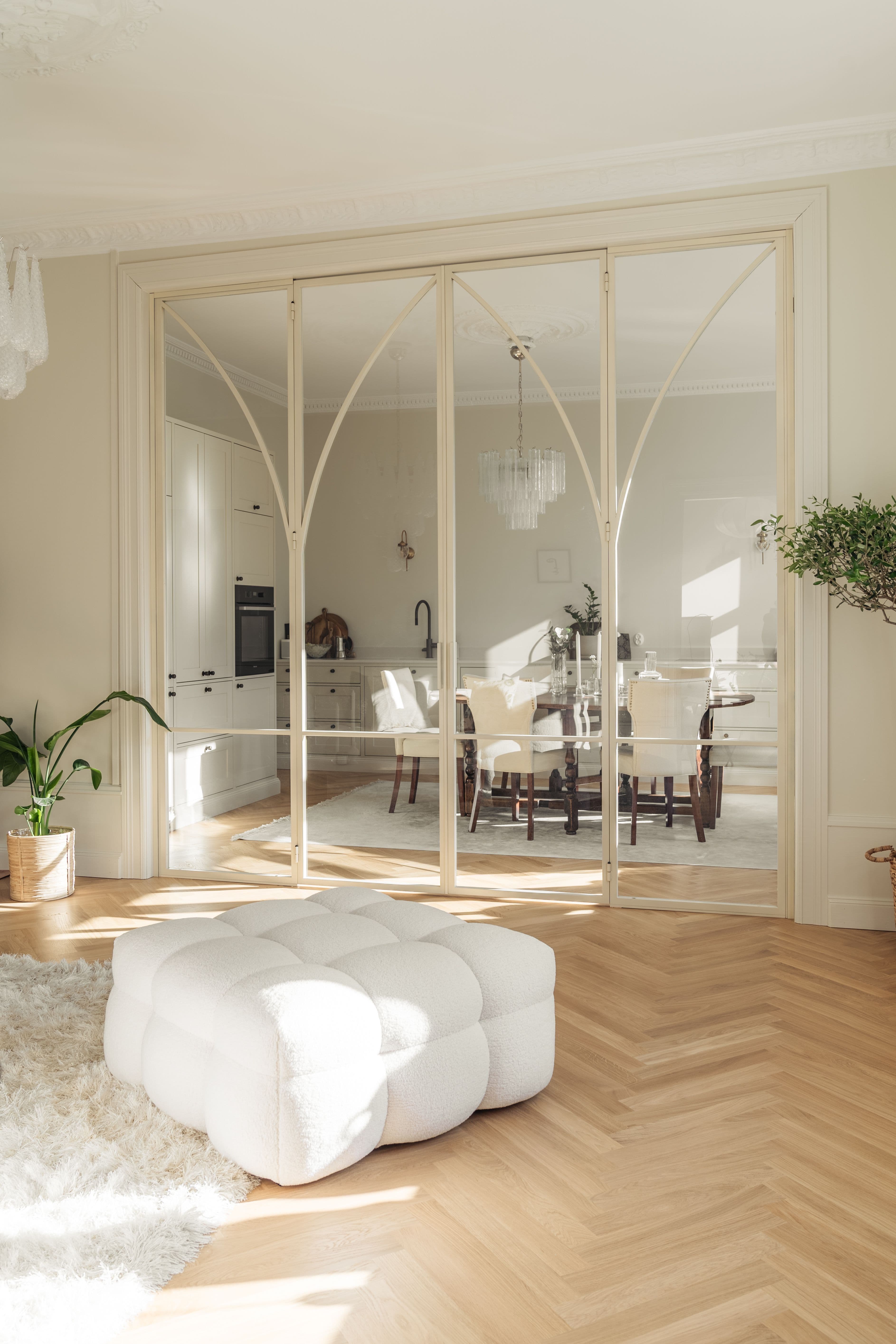 Smijernsdører og smijernsvegger med glass blir ofte brukt som romdelere. Dette fordi de egner seg godt til å dele boligen inn i soner, mens man fremdeles bevarer både lys og romfølelse. I tillegg kan det se veldig stilig og eksklusivt ut – forutsatt at man velger en gjennomtenkt løsning, og ikke minst at sluttproduktet holder en høy håndverksmessig standard. Det får du hvis du velger en glassdør eller en glassvegg fra Myhre Smie.