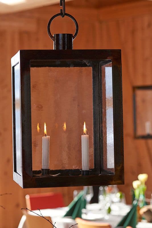 Fås i elektrisk utgave med lyspære, eller med levende lys.